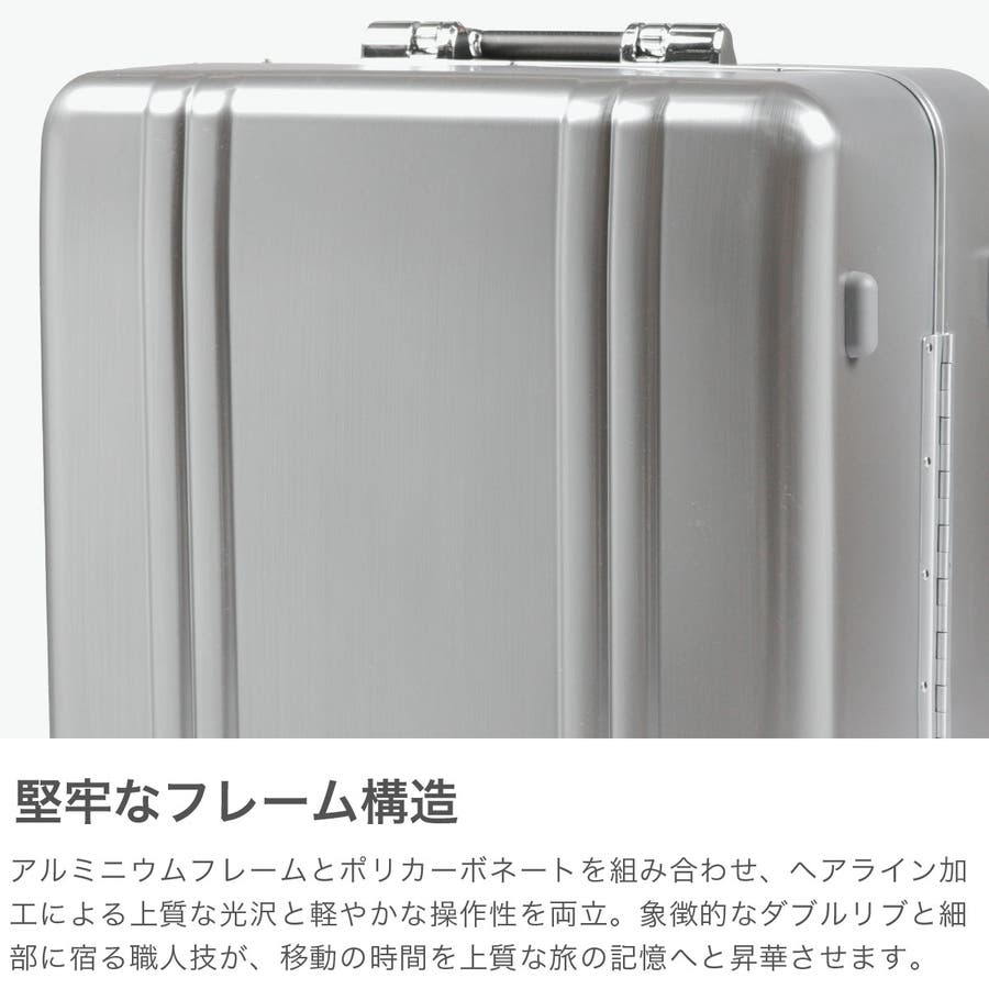 72Lの容量を備えた、長期旅行や海外出張に対応するチェックインサイズのスーツケース。軽量で高耐久なポリカーボネート製ボディに、剛性の高いアルミフレームを採用し、優れた耐衝撃性を実現。回転を補助するベアリング内蔵の静音キャスターにより、重い荷物でもスムーズに運べます。ヘアライン加工による上質な光沢を放つシルバーが目を引く美しいデザインもポイント。