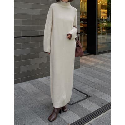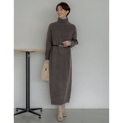 [新色追加][累計販売枚数5.2万枚突破!][低身長サイズ有]前後2WAYハイネック指穴マキシニットワンピース