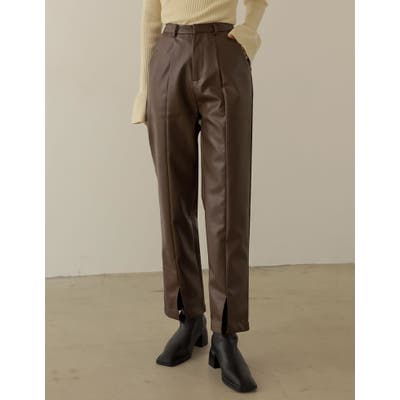 センターライン×ハイウエストでモードな印象に フェイクレザーストレートパンツ