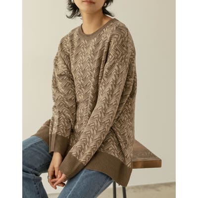 幾何学柄が目を惹くジャガードニット 幾何学ジャガード長袖ニットプルオーバー