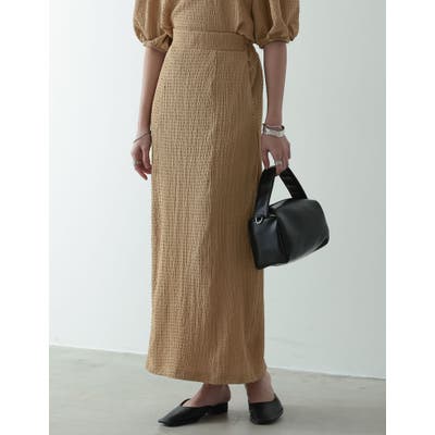 伸縮性に優れたカットソー生地に、表面変化のあるシボ感を施した楊柳ロングスカート。