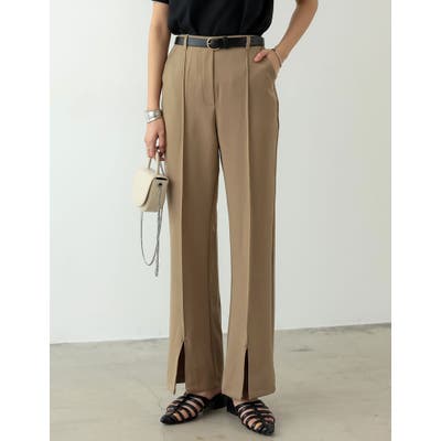 センターピンタックと裾スリット入りで、美脚効果のあるセミフレアパンツ。