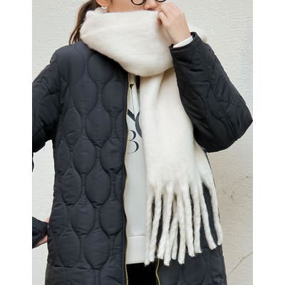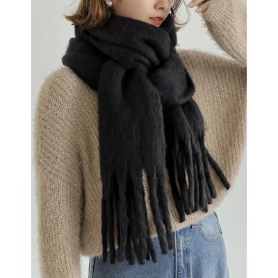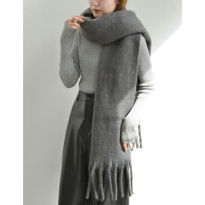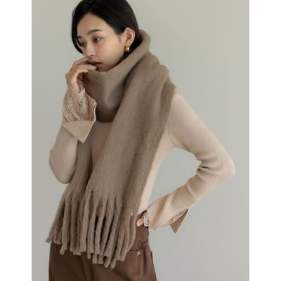 ふんわりとボリュームたっぷりのフェイクウールマフラー。