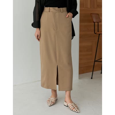 ウエスト部分に段差をつけたデザインがポイントのスリットナロースカート。