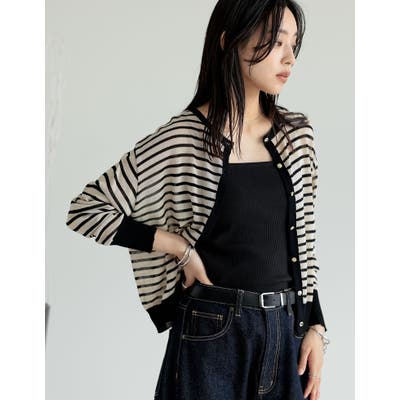 中々透けたボーダーのカーディガンってなくて、またリエディのカーディガンはボタンまで可愛くて実物は写真通りでした!紫外線激ヤバなんでこれは絶対一枚持ってたほうがいい。