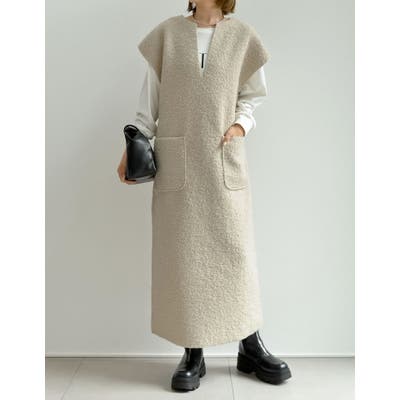 片面はシープ風のカールした毛足が魅力のボアワンピース、もう片面はフェイクウールのシンプルなワンピース。
