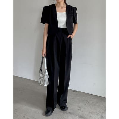 [2点セット][低身長/高身長サイズ有]半袖パフジャケット×スラックスセットアップ