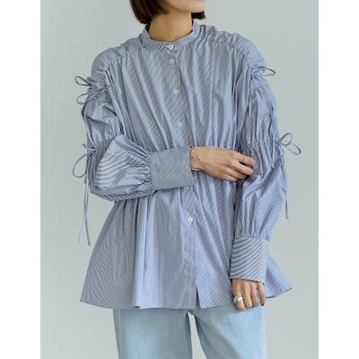 ストライプギャザーリボンブラウス