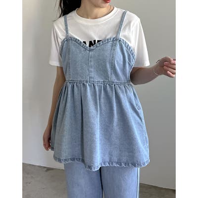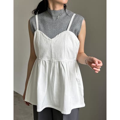バスト部分のカッティングデザインを、トレンド感のあるデニム生地で完成させたデニムキャミソール。