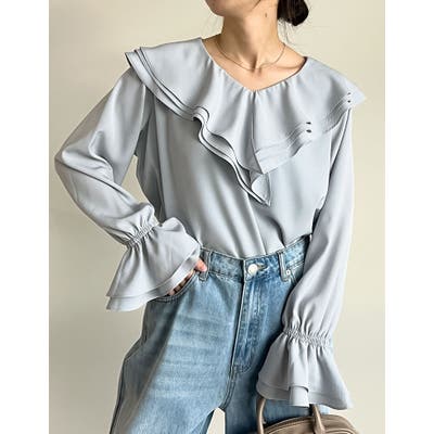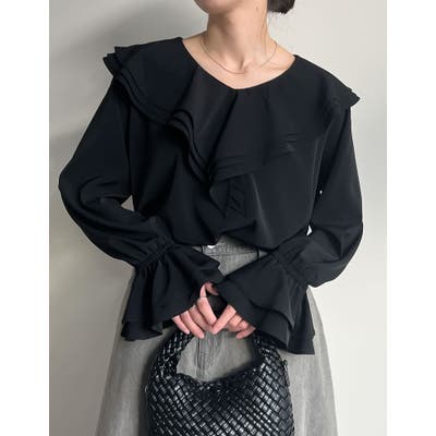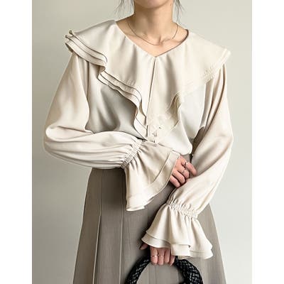 顔周りを品良く華やかな印象にしてくれる、ビッグフリルカラーのブラウス。