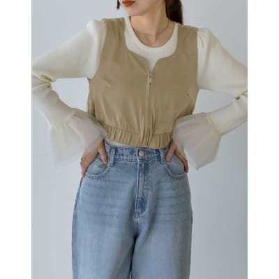 インナーにはコンパクトなニットやカットソー、ブラウスなど様々なトップスとの組み合わせを楽しめます。
