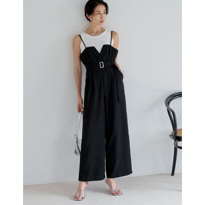 [STORYコラボ][神山まりあさん着用][低身長/高身長サイズ有]カッティングデザインウエストベルト付きキャミサロペット