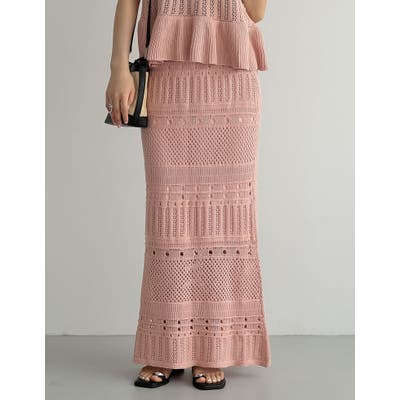 [2024 SUMMER COLLECTION][低身長サイズ有]かぎ針編みニットナロースカート
