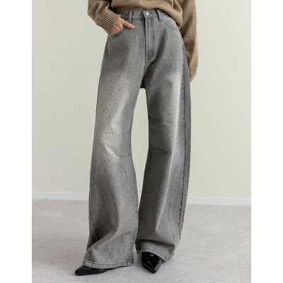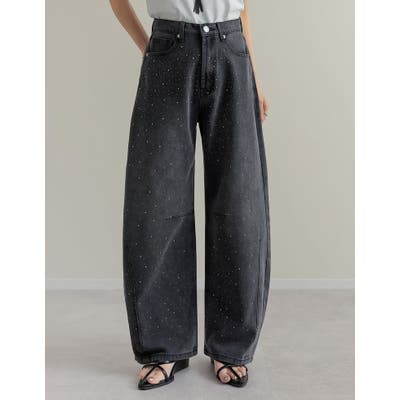 [低身長/高身長サイズ有]メタルストーンバレルレッグデニムパンツ