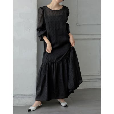 [2024-25 WINTER COLLECTION][MEISM by Re:EDIT][低身長サイズ有]花柄orドットフロッキーオーガンジーロングワンピース