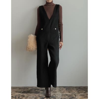 [2024-25 WINTER COLLECTION][低身長/高身長サイズ有]ツイード深Vネック金ボタンサロペット