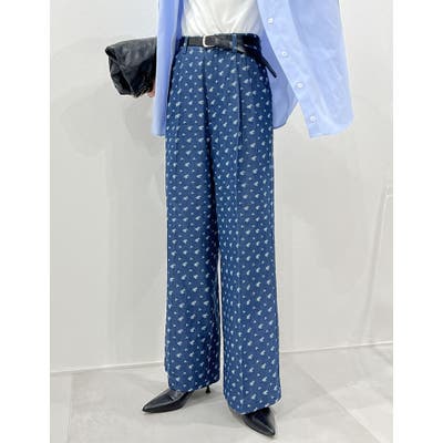 フラワー刺繍ライトオンスデニムワイドパンツ