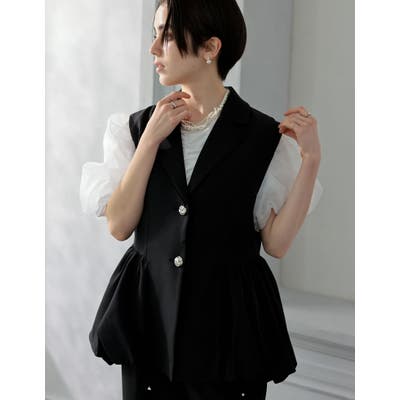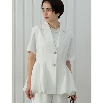 モードなバルーンペプラムを取り入れた、ツイルウエスト切り替えバルーンテーラードベスト。
