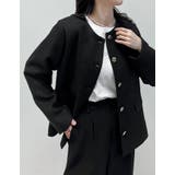 ▼デザインフォーマルからカジュアルまで、シーンを問わず活躍するノーカラージャケット。ツイードライクな表情のある素材が高見えするポイント。デイリーにも使いやすい、軽やかで動きやすい素材なので、ジャケットでありながらストレスフリー。金ボタンが上品さをプラスし、ボックスシルエットでこなれ感を演出します。ノーカラーデザインで、顔まわりがすっきりとした印象に。ホワイトのみ、サテン裏地付きで透けにくい仕様にしました。さまざまなアイテムと相性が良く、着回し力抜群のジャケットです。▼コーディネートテーパードパンツに合わせると、旬のオフィススタイルが完成。ブラックとホワイトはワントーンコーデにした、セレモニースタイルもおすすめです。▼素材表情のあるツイード風の素材