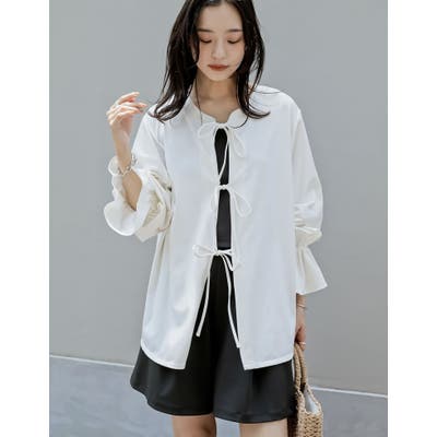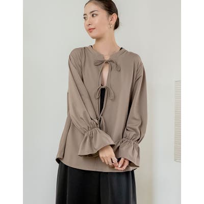 リボンデザイン&袖口にはキャンディスリーブ風のデザインを採用し、フェミニンな印象をプラス。