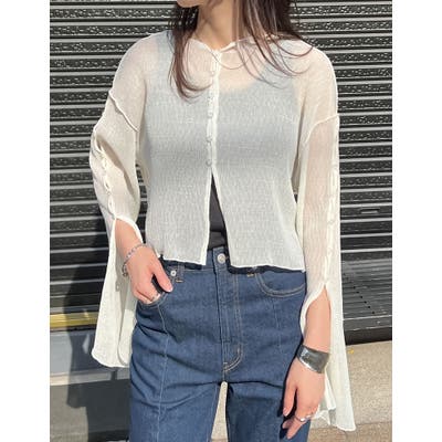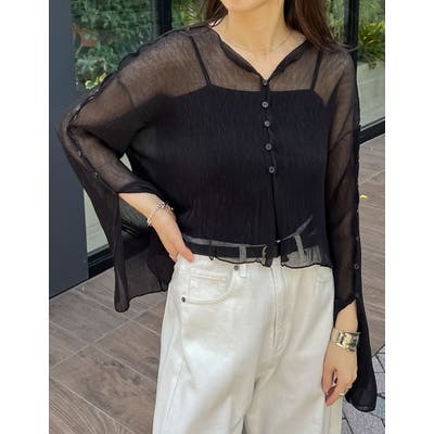 前後2WAYシアー楊柳袖スリットブラウスカーデ
