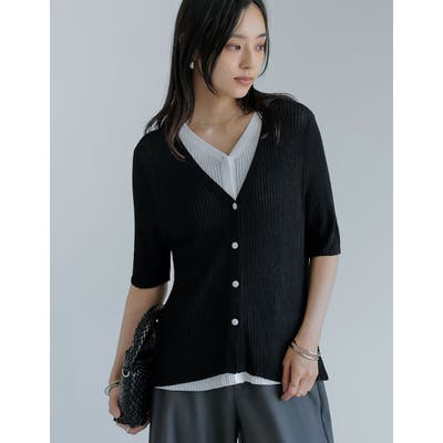 [2025 SUMMER COLLECTION][涼感]リブニット配色レイヤード風半袖カーディガン