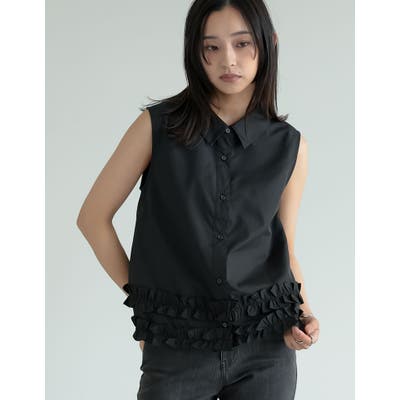 裾フリルデザインが程よく華やかさをプラスする、ノースリーブシャツ。
