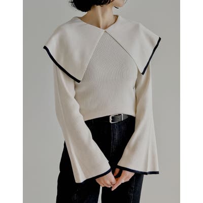 ビッグカラーフレアスリーブ配色or無地リブニットプルオーバー
