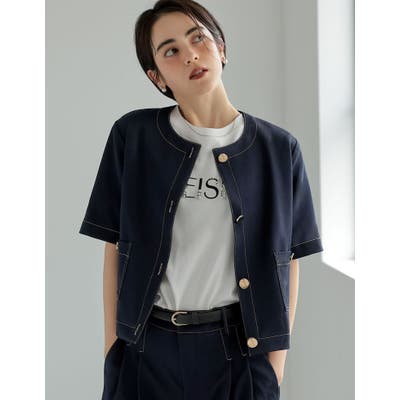 ツイードorデニムライクハーフスリーブジャケット(商品番号:139748)