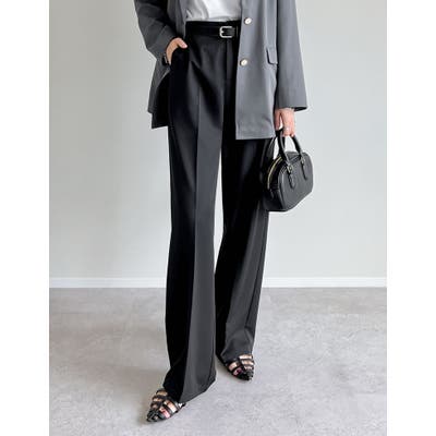 脚を長く見せるすっきりとしたセンタープレス入り&美しいストレートシルエットが高見え効果をプラス。