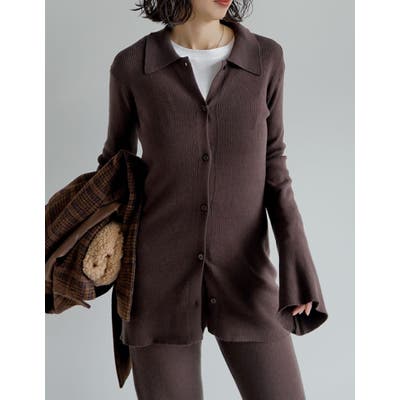 トレンド感のあるポロカラーデザインが魅力のニットカーディガン。襟付きの上品なデザインで、身体に優しく沿うシルエットが女性らしい印象に。柔らかく伸縮性のあるリブニットを使用し、ストレスフリーな着心地を叶えます。程よいフィット感で、きれいめにもカジュアルにも着こなせる万能アイテムです。袖口はさりげないフレアスリーブ仕様で、シンプルな中に華やかさをプラス。ボタンを留めればトップスとして、開ければ羽織りとしても活躍します。フォルム感のあるボトムや、同素材のニットパンツとのセットアップコーデもおすすめです。