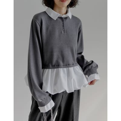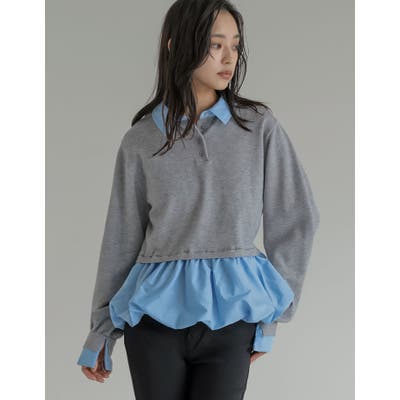 スウェットライクニット×バルーンシャツレイヤード風トップス