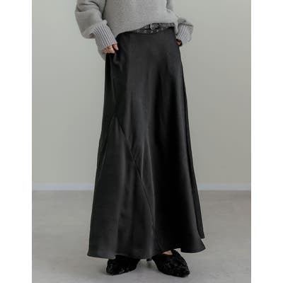 [2025 WINTER COLLECTION][低身長サイズ有]シワ加工サテン切り替えナロースカート