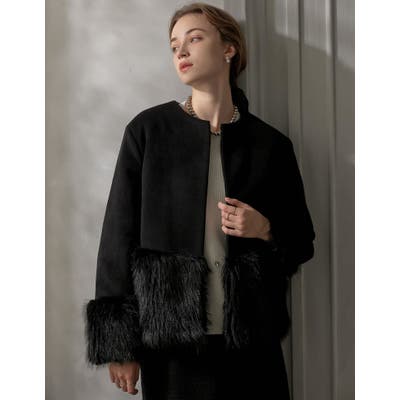 [MEISM by Re:EDIT][2025AW COLLECTION]異素材切り替えファートリムノーカラーコート