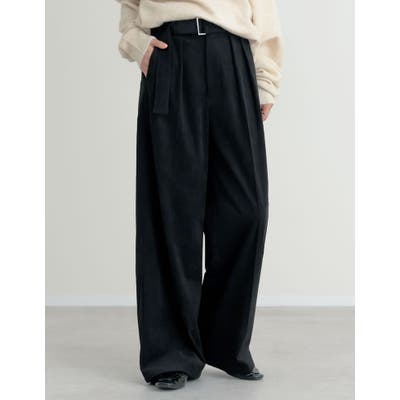 ランダムコーデュロイベルト付きワイドストレートパンツ