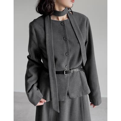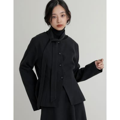 スカーフ付きウールライクノーカラージャケット