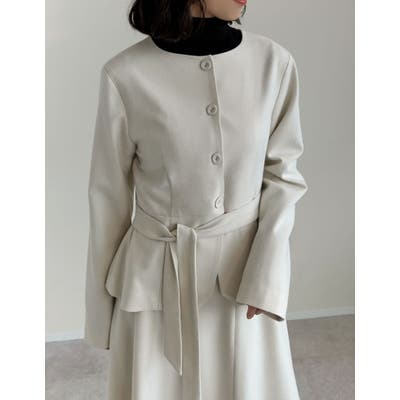 スカーフと2点セットになった、品よくモードに着こなせるノーカラージャケット。暖かなウールライクな起毛素材を使用し、見た目にもシーズンムードたっぷりに着用できる一着です。スカーフは首元に巻くだけでなく、ウエストにベルトのように巻いてペプラムシルエットを強調するなど、さまざまなアレンジが楽しめます。ウエストから自然に広がるペプラムラインが、気になるヒップ周りをカバーしつつ、ウエストをすっきり見せてくれるため、着るだけでスタイルアップが叶います。コンパクトな見た目ながらウールライク素材で暖かく、冬のお出かけにぴったりのアウターです。