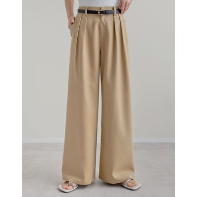 とろみと絶妙な落ち感のあるツイル素材を使用し、モードな雰囲気で着こなせるツータックワイドパンツ。
