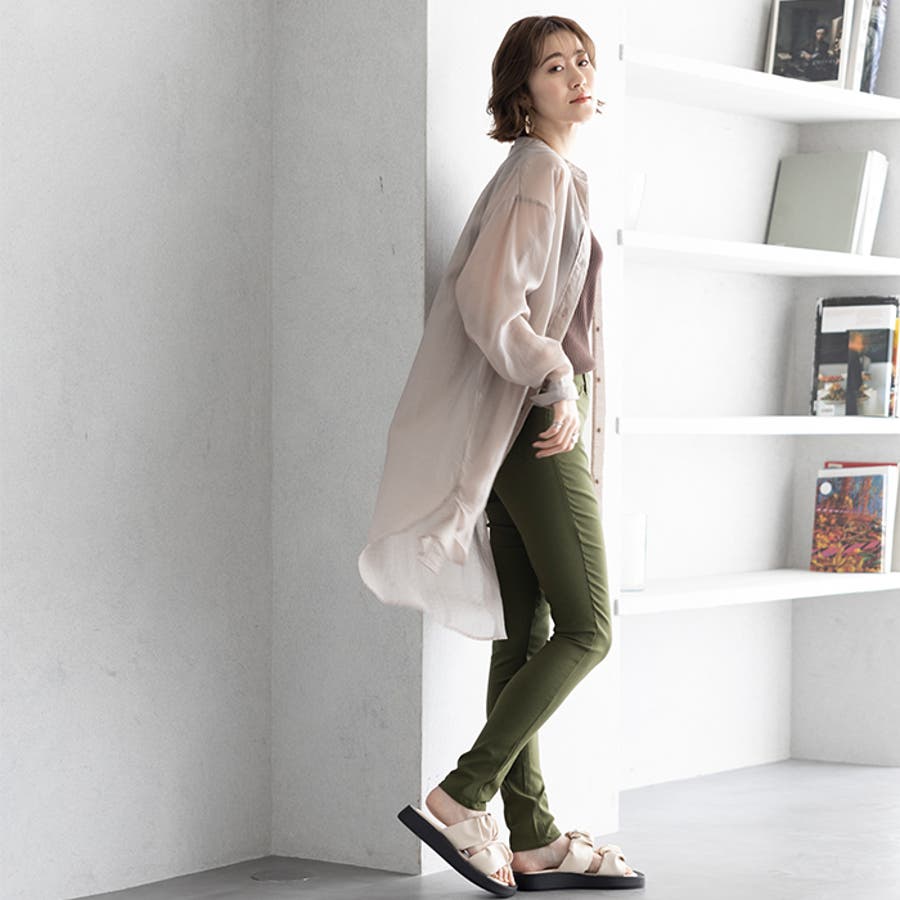 キレイ見えするシルエットでお出掛けはもちろん通勤服としても◎