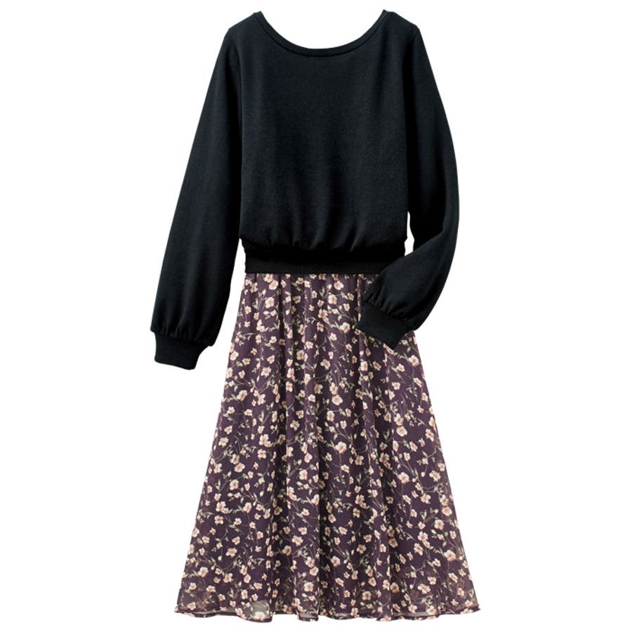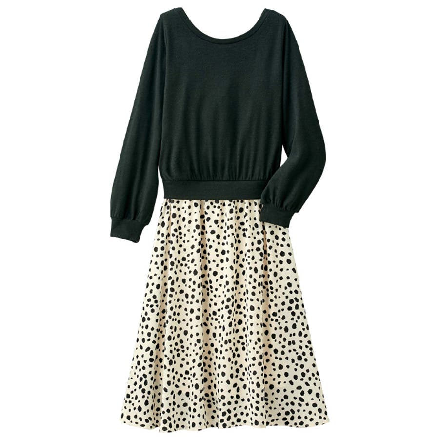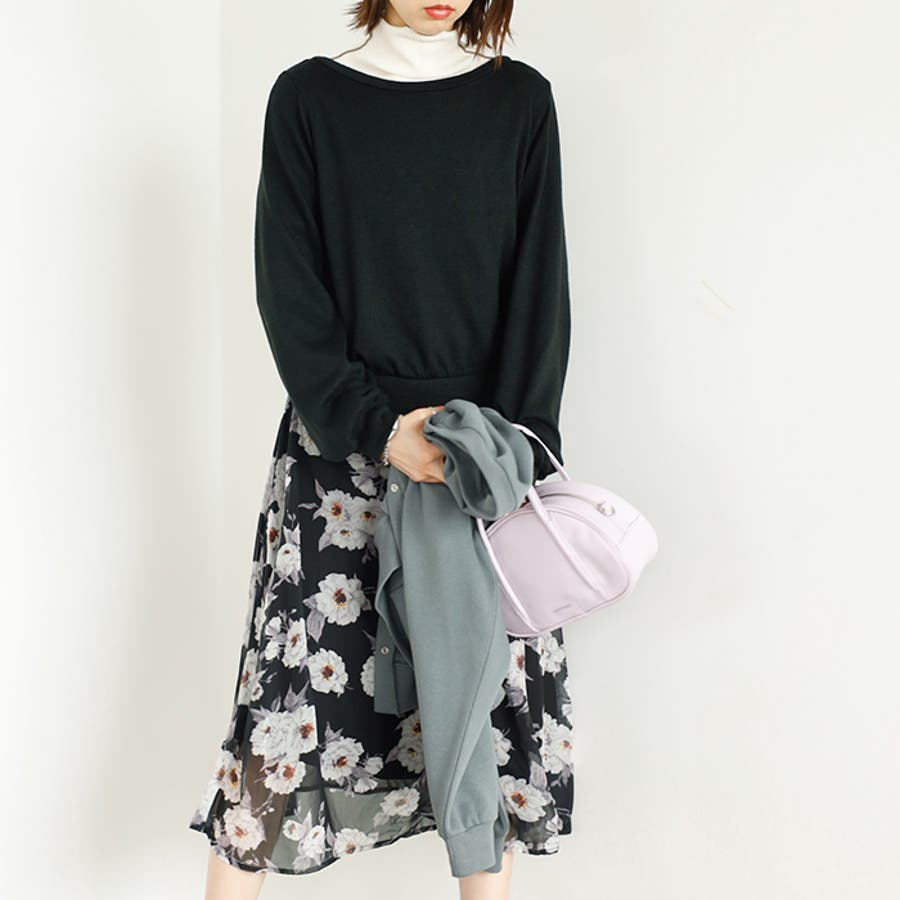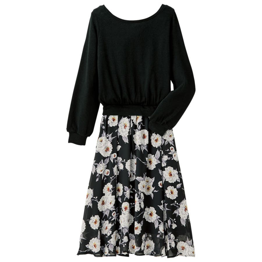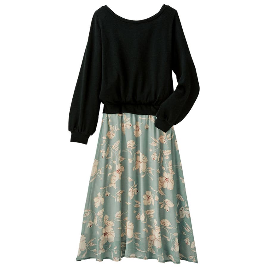 【黒×ミント系花柄 】(レギュラー丈)コーデ風ドッキングワンピ