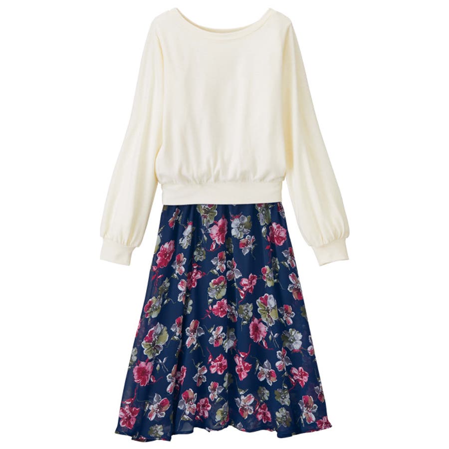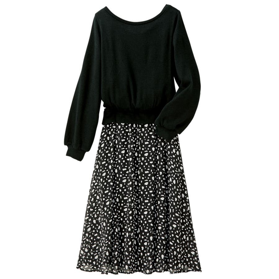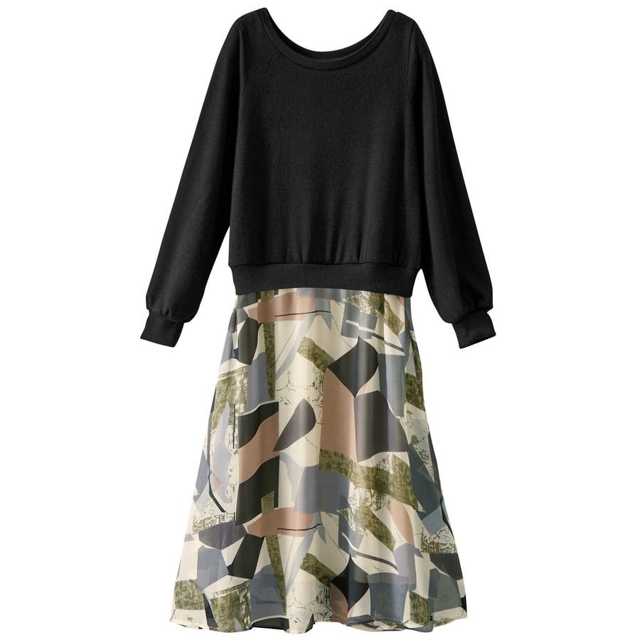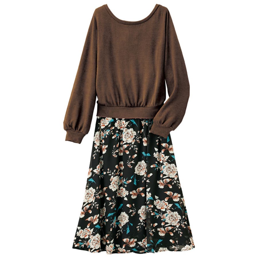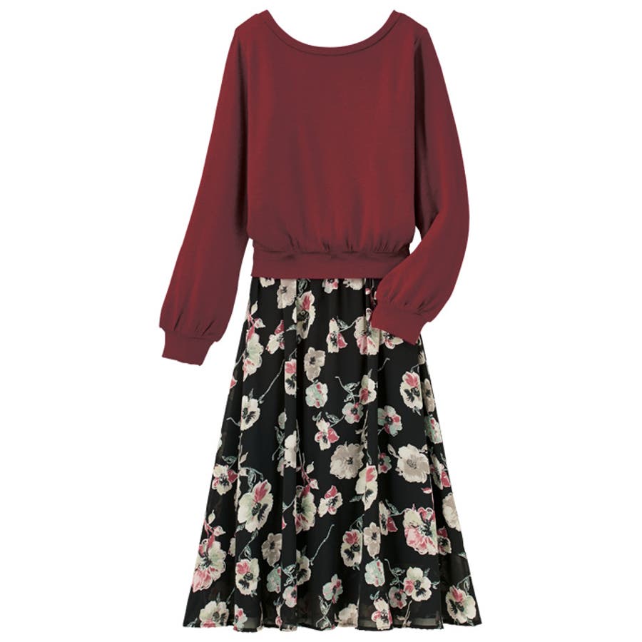 【黒×ミント系花柄 】(レギュラー丈)コーデ風ドッキングワンピ