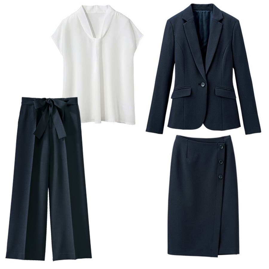 洗えるストレッチ!ジャケット&ブラウス&ワイドパンツ&スカートスーツセット