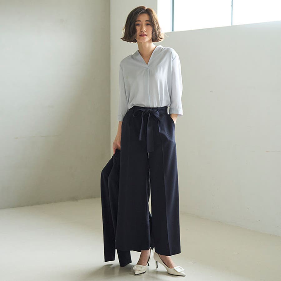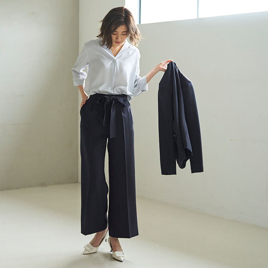 お手持ちのブラウスやカットソートップスと合わせるだけで、スタイリッシュなフォーマルスタイルが完成。