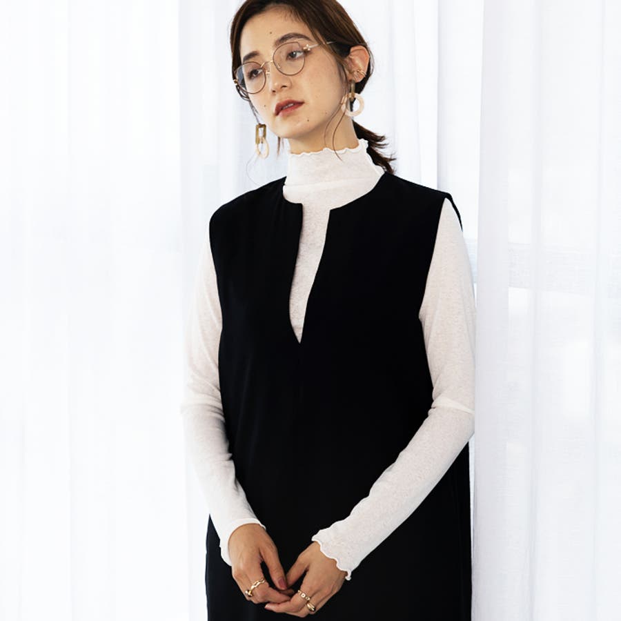 深めのスリットネックがすっきりと、スマートな着こなしを叶えます。