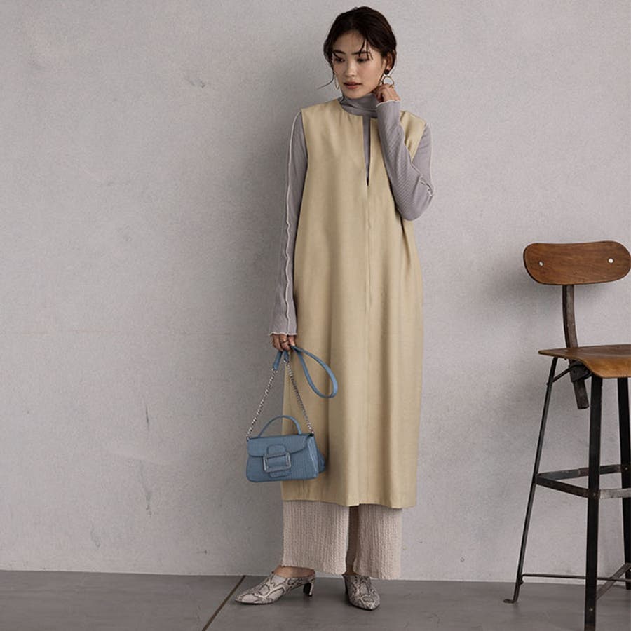 インナー次第でロングシーズン、様々な着こなしを楽しめます。