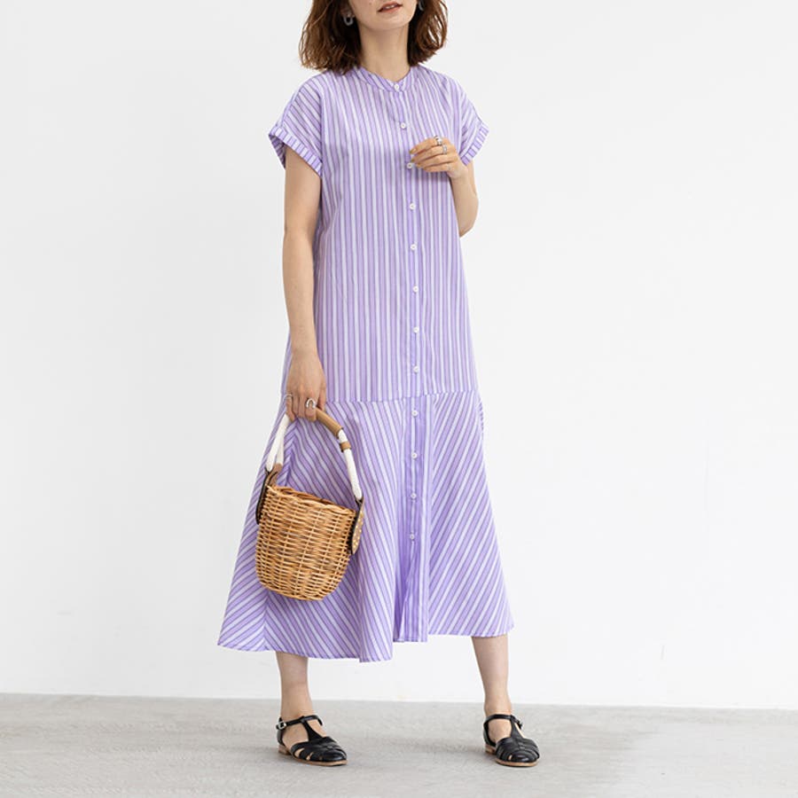 夏らしいニュアンスカラーのマルチストライプがシーズンムードを高める1枚です。