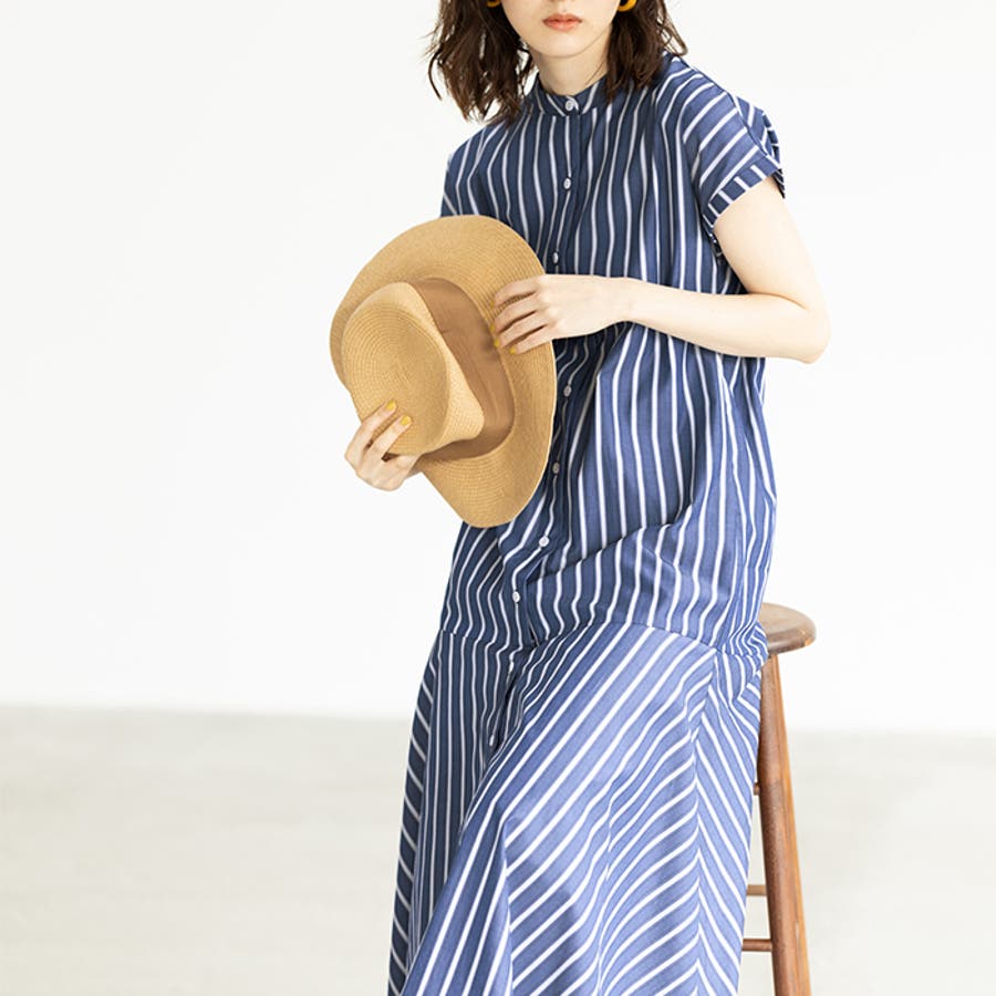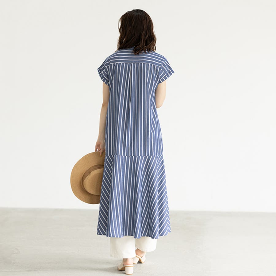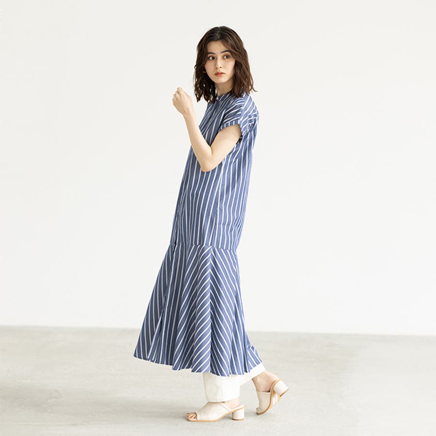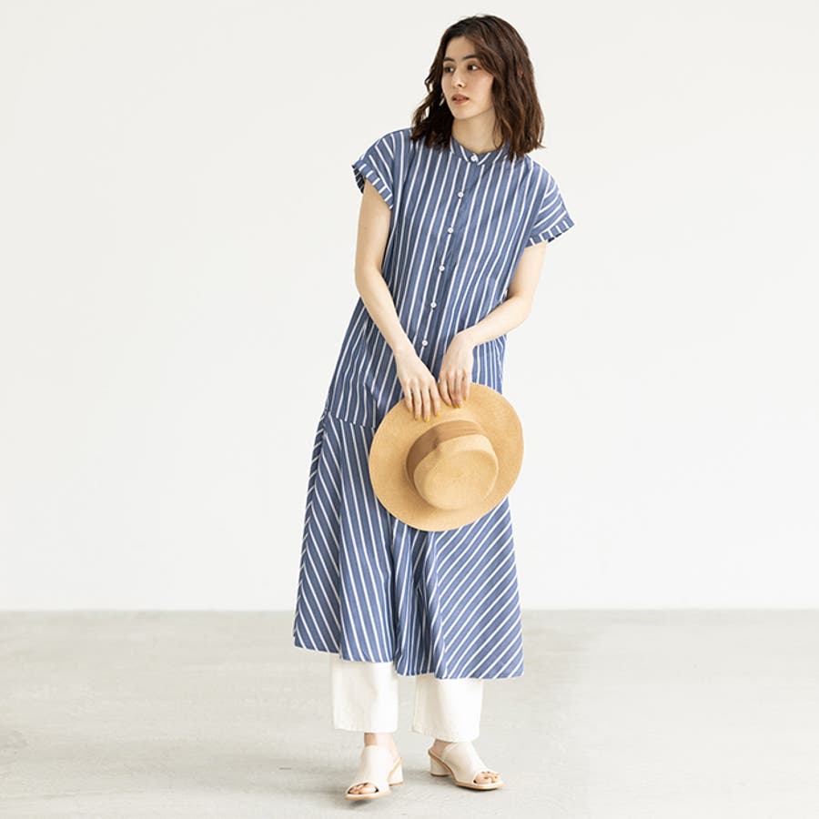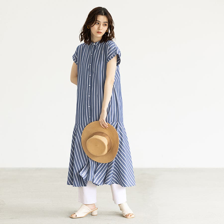 たっぷりとしたロング丈とストライプ柄で縦のラインを強調し、スタイルよく見せてくれるのも嬉しいポイントです。