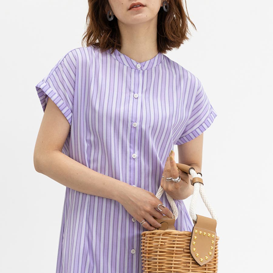 すっきりとしたバンドカラーと折り返しデザインを施したフレンチスリーブでこなれたカジュアル感もプラス。
