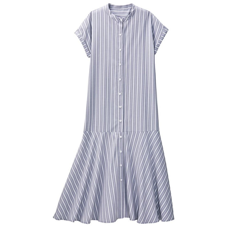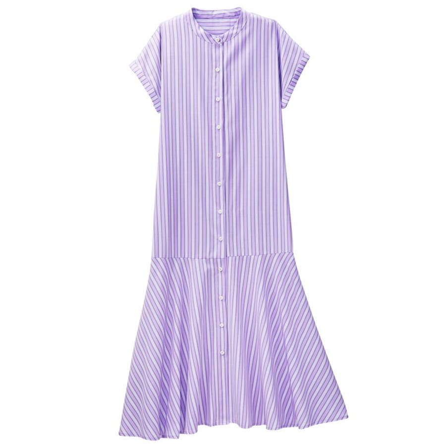 ふわっと広がるマーメイド切替が女性らしいシルエットのシャツワンピース。