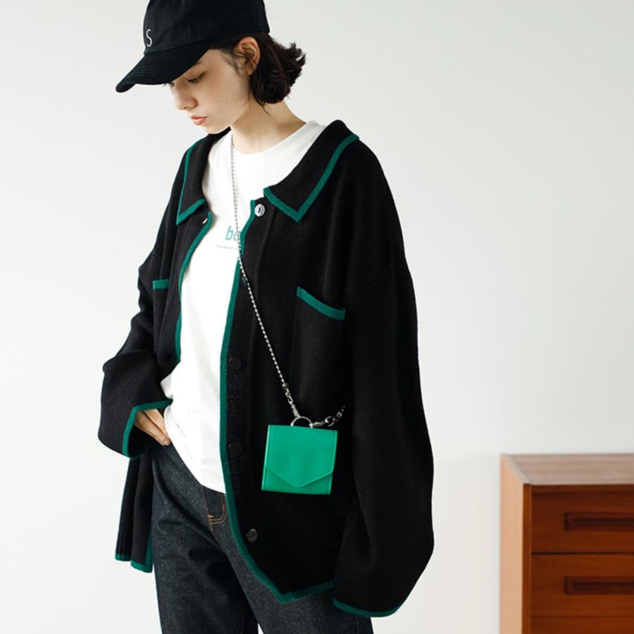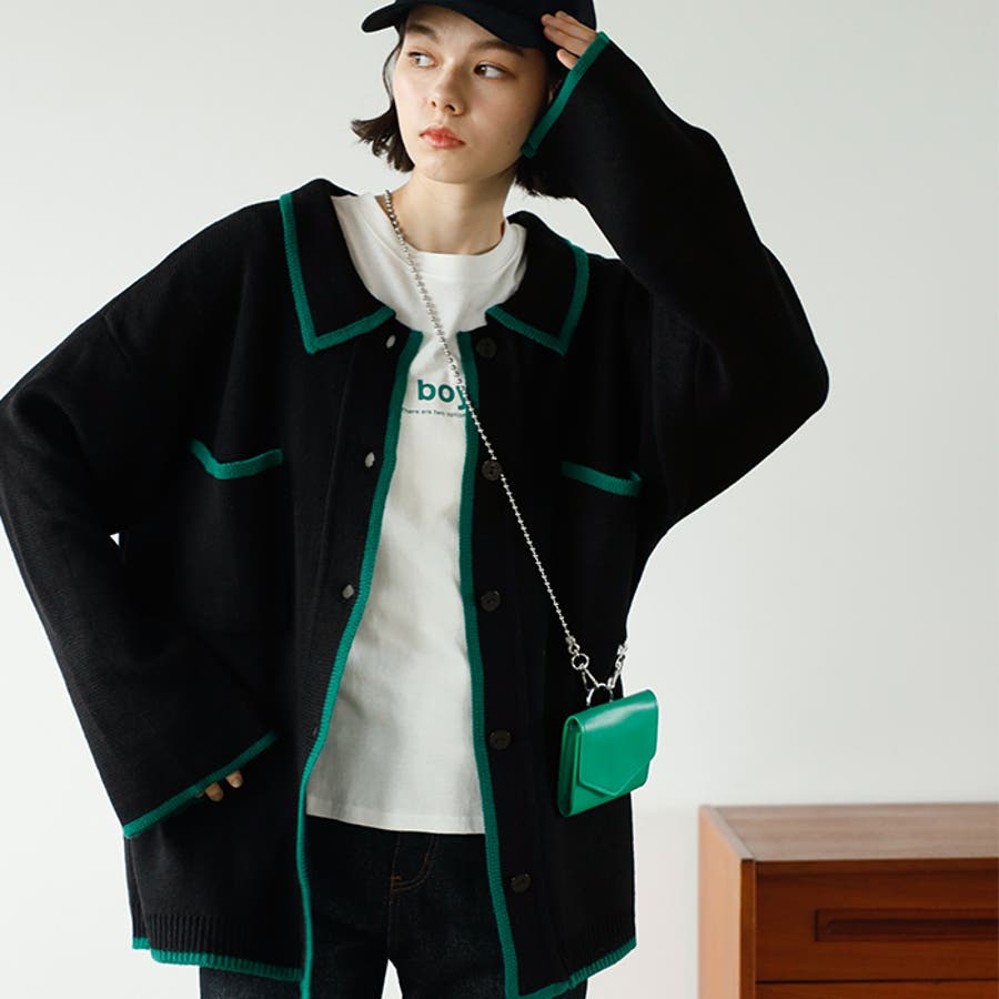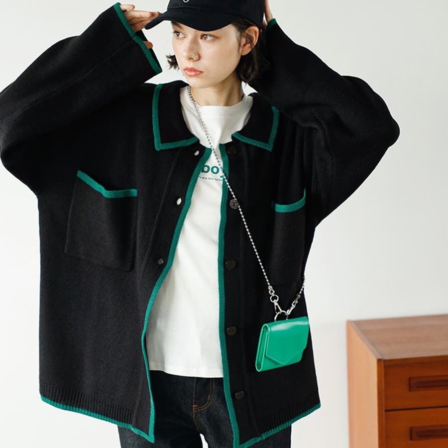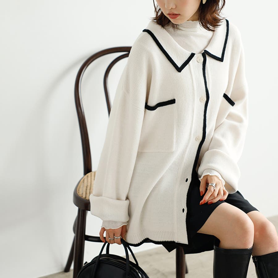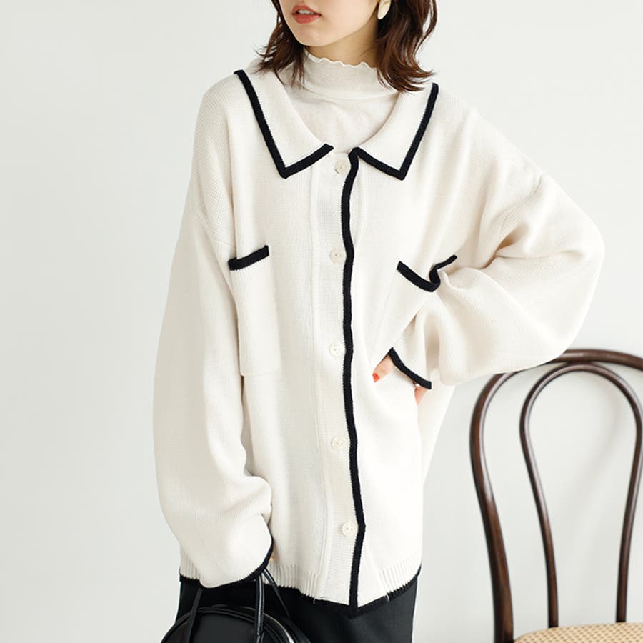 配色デザインニットカーディガン